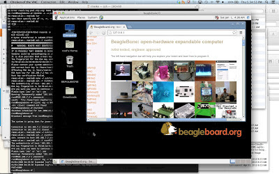 Now all that is left is to go to your computer (that the USB cable is connected to) and run your favorite VNC client. I use the old standby Chicken of the VNC on the Mac, but there are plenty of others. Connect to 192.168.7.2 and you should be able to see and control your BeagleBone GUI from your computer.... without all the wires.